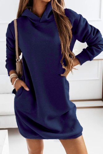 • Kadın uzun kollu kapşonlu kısa iki iplik elbise