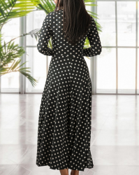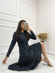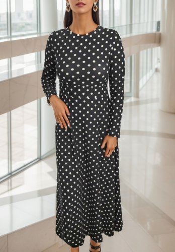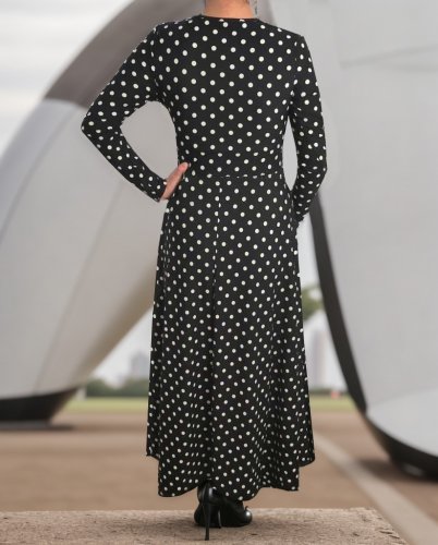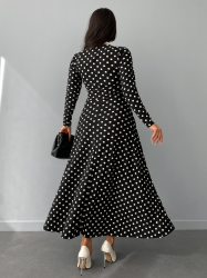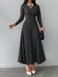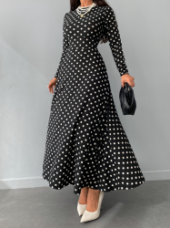Kadın siyah tam boy beyaz puantiyeli elbise