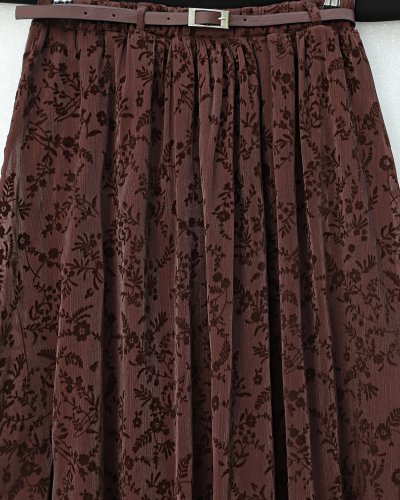 • Astarlı Kemerli Kabartma Desenli Organze Etek K Bordo