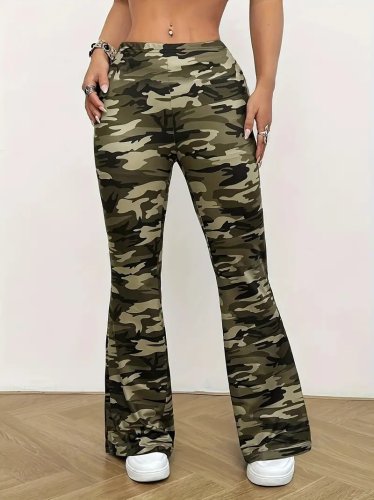 Kadın yüksek bel cep detaylı leopar desenli dalgıç tayt