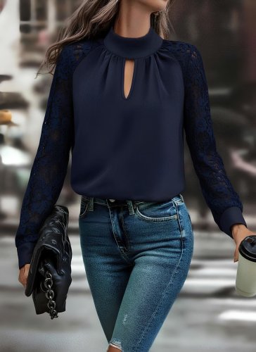 Kadın uzun kollu göğüs pencere detay yaka boğazlı kolları tüllü sandy bluz